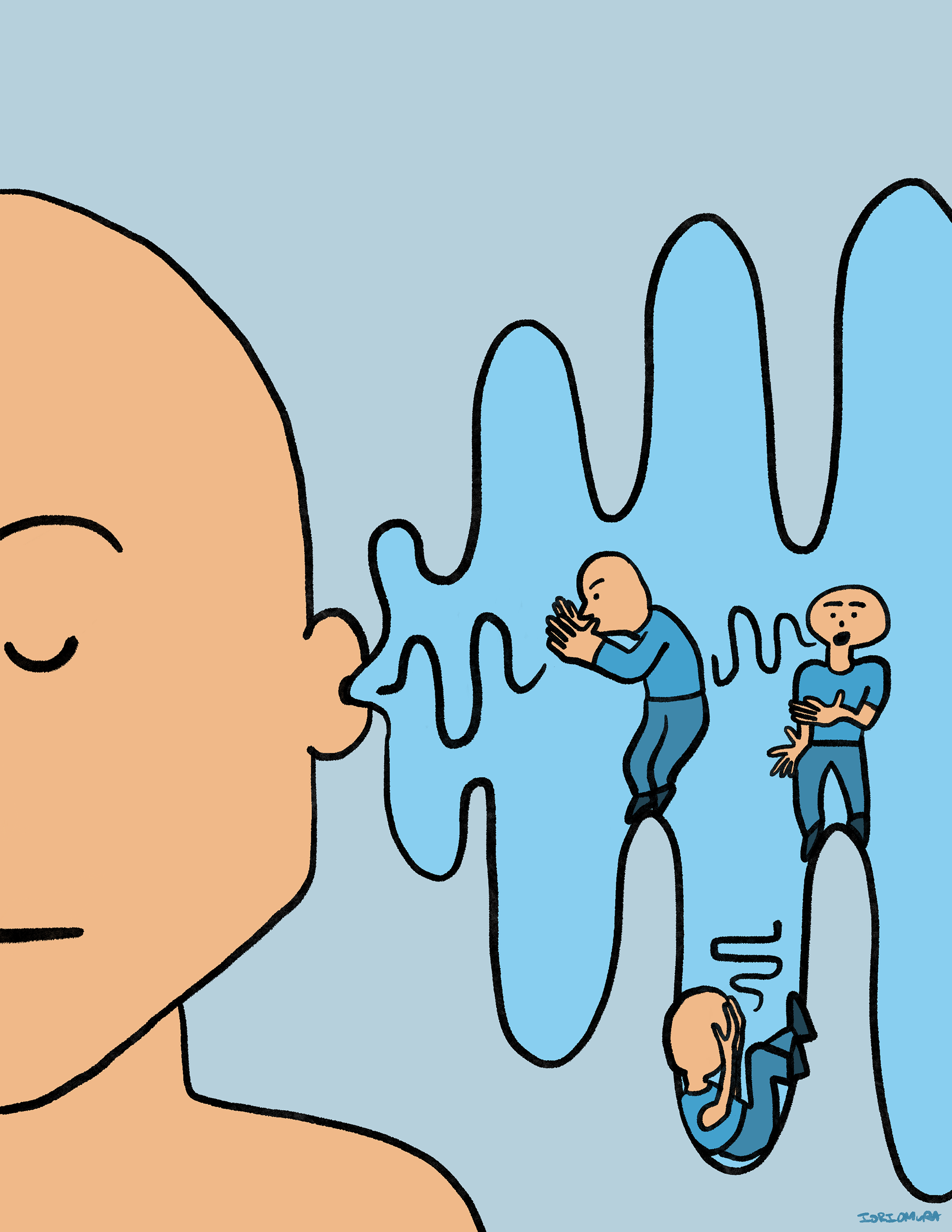 Person trying to get out their own head